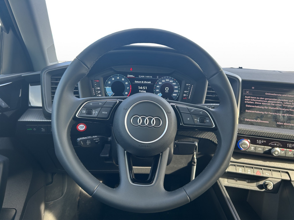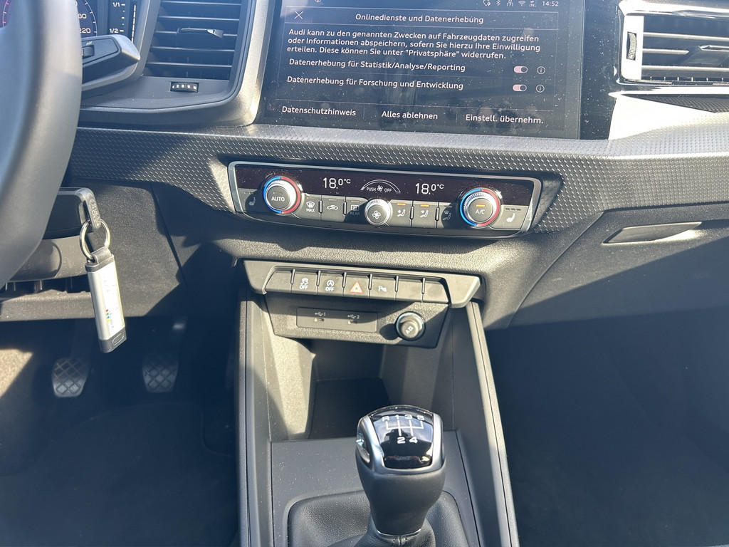 Multi-Media-Interface MMI Basic Plus / MMI Radio Plus , Farbdisplay (8,8 Zoll), 6 Lautsprecher, Innenausstattung: Dekoreinlagen Akzentteile schwarz glänzend, Fahrassistenz-System: Notfall-Assistent mit automatischem Notruf , Audi connect (Notruf- und Assistance-System), Nichtraucher-Paket, Einstiegsleisten mit Aluminiumeinlage, Dachkuppel Wagenfarbe, Fahrassistenz-System: Verkehrszeichenerkennung, Tagfahrlicht, Licht- und Regensensor, Heckscheibenwischer, Dachkantenspoiler, Stoßfänger Ausführung: advanced, Frontscheibe Wärmeschutzverglasung, Radioempfang digital (DAB), USB-Schnittstelle, Universal-Schnittstelle Bluetooth, Anzeige für Wasserstand (Wischanlage), Reifenkontroll-Anzeige, Innenausstattung: Dekoreinlagen schwarz, Innenausstattung: Dekoreinlagen Akzentteile schwarz, Geschwindigkeits-Begrenzeranlage, Airbag Fahrer-/Beifahrerseite, Kopf-Airbag-System (Sideguard), Seitenairbag vorn, Airbag Beifahrerseite abschaltbar, Fußmatten Velours, Sitzbezug / Polsterung: Stoff Delta, Sitz vorn links höhenverstellbar, Rücksitzlehne geteilt/klappbar, Fensterheber elektrisch vorn + hinten, Funkschlüssel, Sitzbelegungserkennung für Sicherheitsgurte, Wegfahrsperre (elektronisch), Isofix-Aufnahmen für Kindersitz an Beifahrersitz und Rücksitz, Anti-Blockier-System (ABS), Fahrassistenz-System: Bremsassistent (Audi pre sense front), Standard-Fahrwerk, Fahrassistenz-System: Spurverlassenswarnung, Fahrassistenz-System: Müdigkeitserkennung (Pausenempfehlung), Reifen-Reparaturkit, Lenksäule (Lenkrad) mech. Höhen-/Längsverstellung, Servolenkung elektro-mechanisch, Elektron. Stabilitätskontrolle (ESC), Antriebsart: Frontantrieb, Schadstoffarm nach Abgasnorm Euro 6e, Start/Stop-Anlage, Otto-Partikelfilter (OPF), Karosserie: 4-türig, Getriebe 5-Gang, Motor 1,0 Ltr. - 70 kW TFSI.